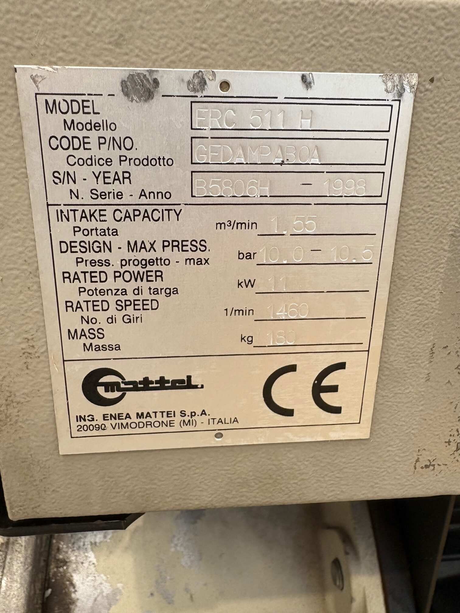 Compresor MATTEI ERC 511H